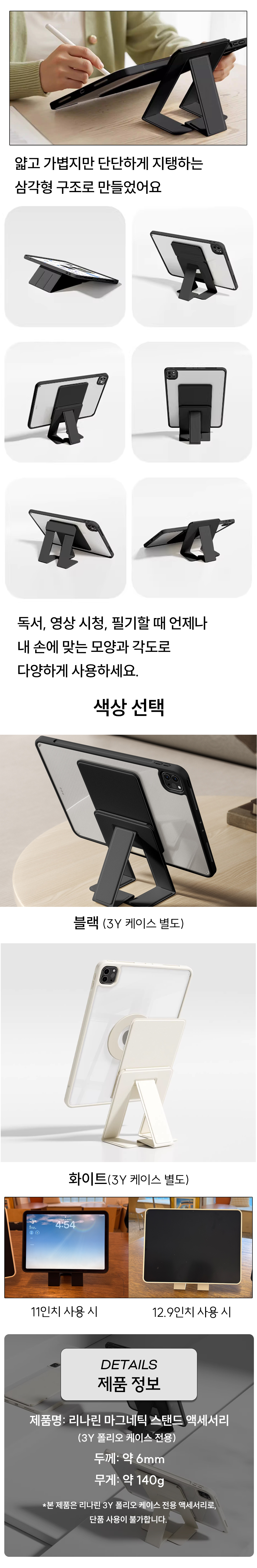 리나린 아이패드 마그네틱 스탠드(3Y 폴리오 케이스 전용)